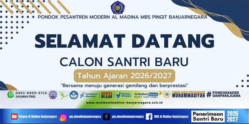 PSB PONDOK PESANTREN MODERN AL MADINA MBS PINGIT BANJARNEGARA TAHUN 2026 dilaksanakan secara online. Bagi calon santri silahkan mengisi formulir pendaftaran